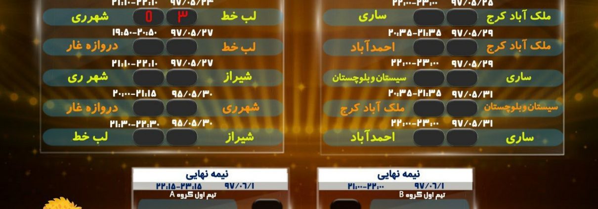 جدول مسابقات و نتایج بازیها روز اول رده جوانان در چهارمین دوره لیگ پرشین