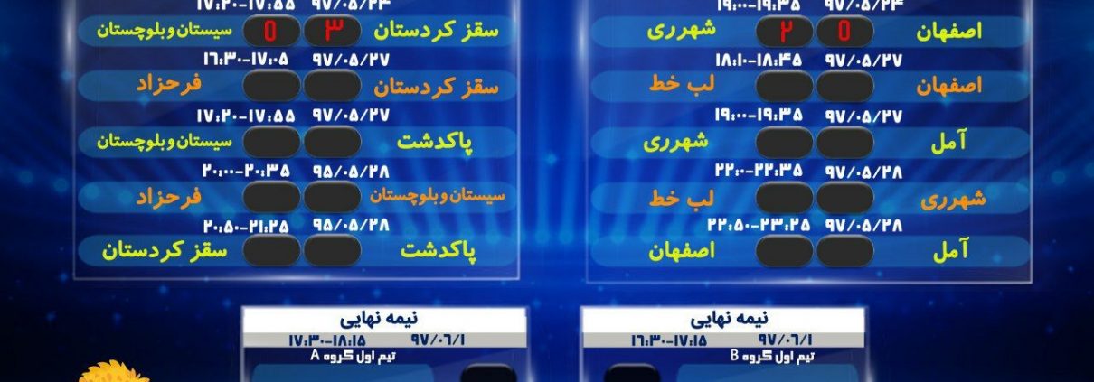 جدول مسابقات و نتایج بازیها روز اول رده نونهالان در چهارمین دوره لیگ پرشین