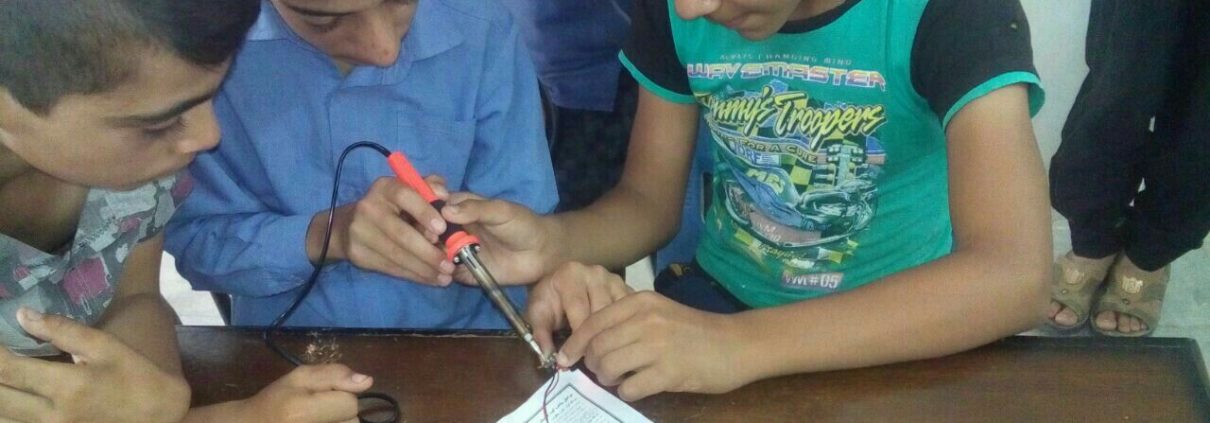 در ادامه‌ی این کلاس‌ها، کودکان با تعدادی از قطعات الکترونیکی آشنا شدند و توانستند کیت آزمایشی چراغ چشمک‌زن را بر روی بورد پیاده‌سازی کنند.