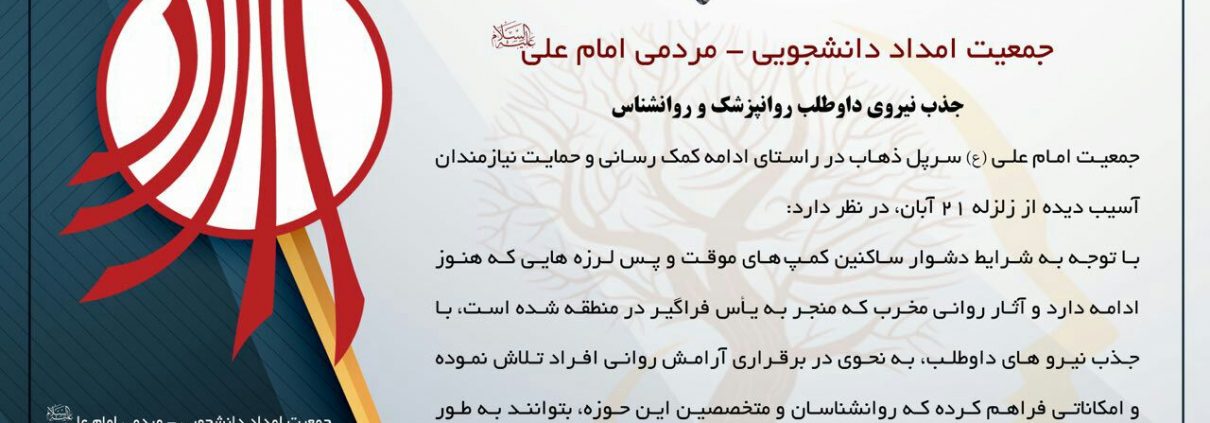 فراخوان همکاری داوطلبانه روانشناس و روانپزشک جهت فعالیت در سرپل ذهاب